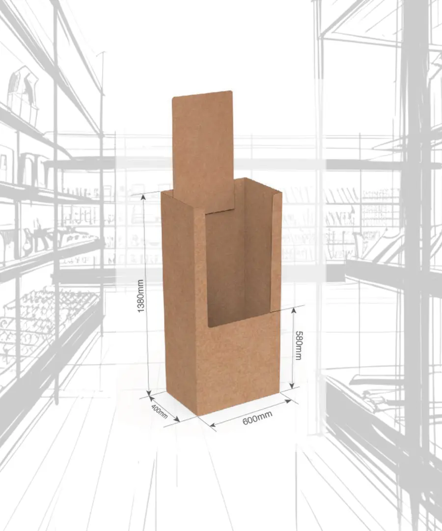 Fabricado en cartón, este tipo de PLV combina ligereza, resistencia y sostenibilidad, con gran capacidad para contener producto.