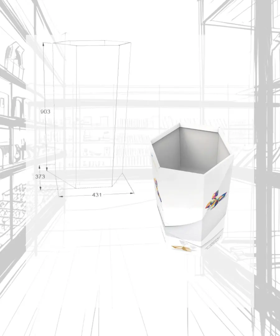 Fabricado en cartón, este tipo de PLV combina ligereza, resistencia y sostenibilidad, con gran capacidad para contener producto.
