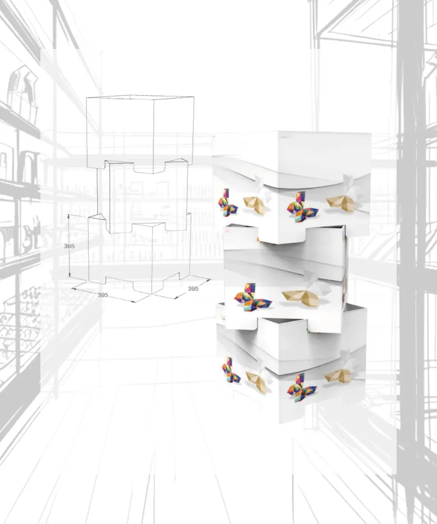 Fabricado en cartón, este tipo de PLV combina ligereza, resistencia y sostenibilidad, con gran imagen comunicativa.