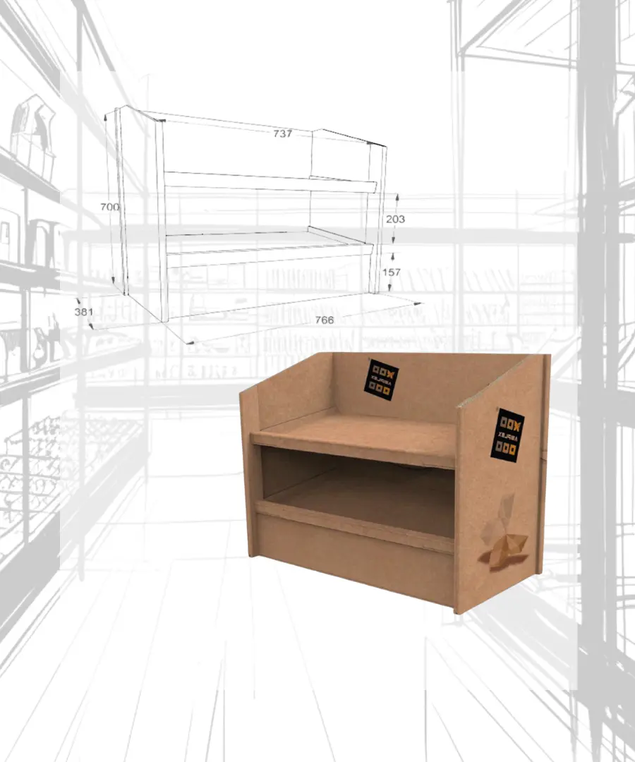 Fabricado en cartón, este tipo de PLV combina ligereza, resistencia y sostenibilidad, con gran imagen comunicativa.
