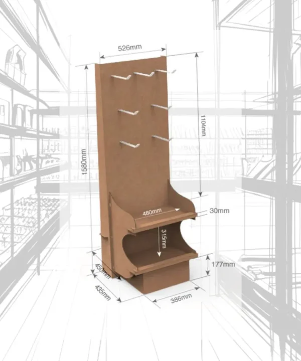 Un PLV floorstand de cartón es un expositor publicitario autoportante diseñado para colocarse directamente en el suelo de tiendas o espacios comerciales. Su función es destacar productos, promociones o mensajes de marca en el punto de venta, aumentando su visibilidad y atrayendo la atención del cliente.