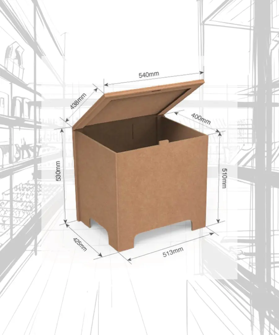 Un PLV mobiliario de cartón es un expositor publicitario diseñado para colocarse directamente en el suelo de tiendas o espacios comerciales. Su función es almacenar productos, mostrar producto destacado, atrayendo la atención del cliente.